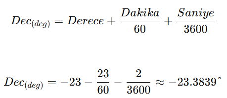 Dec (Declination – Deklinasyon): -23° 23′ 02″