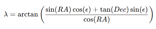 - Burada tropikal ekliptik sistemi kullanıyoruz ve ekliptik boylama çeviriyoruz: