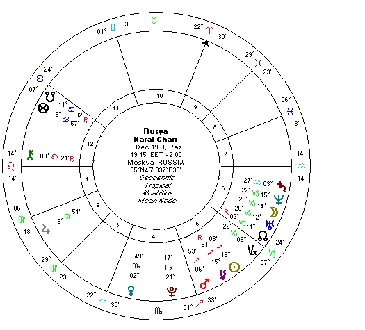 Amerika ve Rusya’nın kendi kompozit haritasına bakarsak yükselende Terazi burcunu görürüz. Ki Terazi bu iki ülke arasındaki rekabeti “iki taraftan biri” olmayı ve soğuk savaşı gayet iyi anlatıyor. ASC’nin yöneticisi Venüs de gene Terazi Merkür’üyle karşılıklı ağırlama halinde. “Sıcak” bir savaş için hem 7. eve hem de Mars’a bakmak gerekir. 7. evin yöneticisi Mars 12. evde ve kendisini ortaya “açıkça” koymayan, daha ziyade “gizli faliyetleri” anlatan bir evde. Burada da sıcak bir savaşa girilmesi emarelerini göremiyoruz. Yalnız bu Mars bir T-Kareye bağlı. Chiron iki tarafın da birbirini yaraladığını ama en önemlisi ise her türlü “marsiyen” faliyette asıl kendilerinin yaralanacağını temsil ediyor. Bu karşı tarafa yumruk atan elin kırılması ama karşı tarafın zarar görmemesi gibidir. İki ülke de muazzam bir nükleer güce sahipken bu nasıl olur bilemiyorum ama astrolojik işaretler bunu söylüyor ve muhtemelen de haklı… T-Karenin asıl sorun yaratan ve bir savaş başlatabilecek ayağı Satürn. Satürn Mars’ı kontrol altında tutuyor lakin Mars 12. evde yanlış davranışları da ve bu yanlış davranışlardan kaynaklanan kayıpları anlatır. Satürn de “kurallar” dır ve Mars bir anda tüm kontrolünden (Satürn) kurtularak kuralları yıkabilir. Ki bunu da yapacak güce sahip. Yalnız bu Mars’ın gene de “açığa” çıkmayacağına daha fazla güvenebiliriz çünkü dispozitörü de 12. evde..